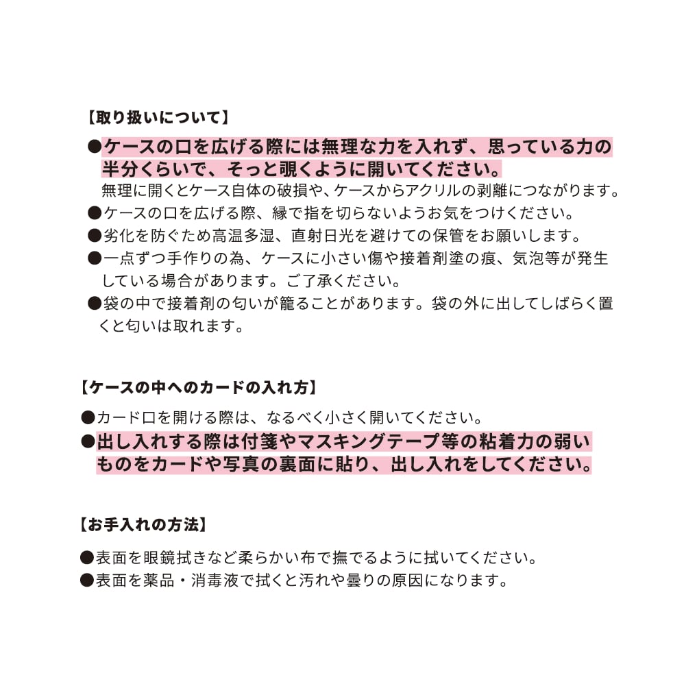 ※手作りの商品ですので、接着面の跡や小傷などはご了承の上ご使用お願いいたします。